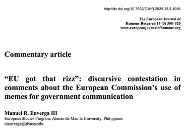 Dr Manuel R Enverga III, Director of Ateneo de Manila University’s European Studies Program, is the first Philippine academic to have been conferred the prestigious Jean Monnet Chair in European Studies by the European Union, and is only the fourth in Southeast Asia since the title was awarded over 30 years ago. The distinction is awarded to academics who have made recognizable contributions to research and teaching in the field of European Studies. During his three-year term as Chair holder, Dr Enverga will be working to expand European Studies in the Philippines through visiting lectures, organization of events, teaching courses, publishing research, and producing episodes for his online show, The Eurospeak Podcast.